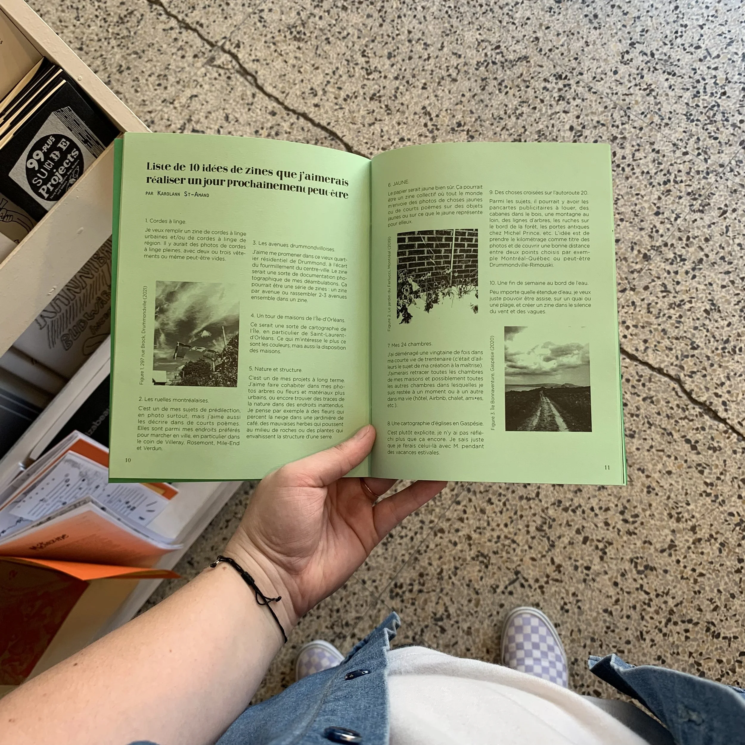 « Liste de 10 idées de zines que j’aimerais réaliser un jour prochainement peut-être », Montréal, Zine de zines, no 4, été 2024.